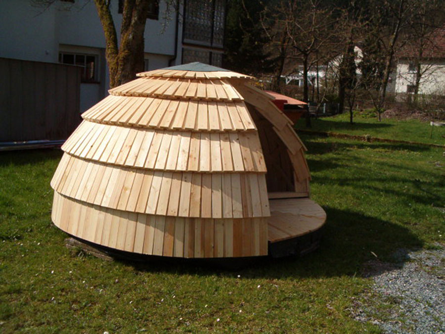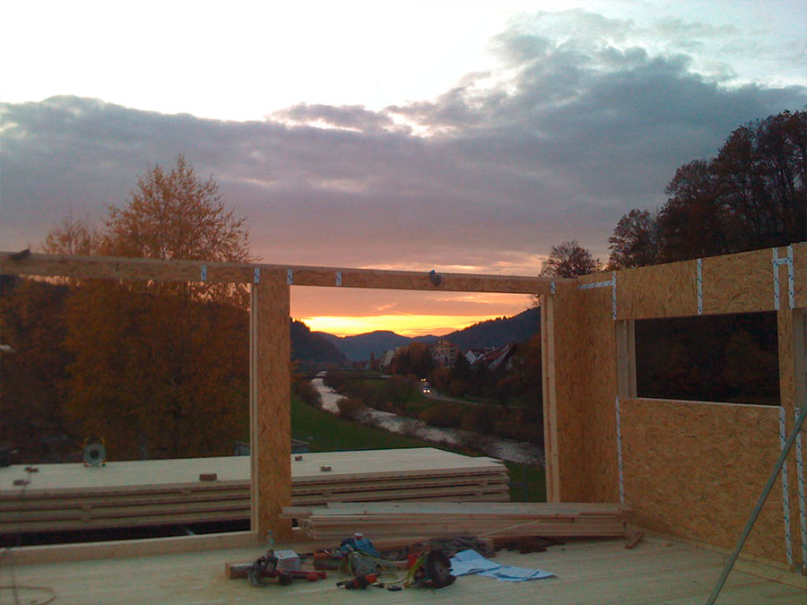 In unserer Werkstatt nutzen wir die anfallenden Holzreste thermisch, was in unserem Fall sinnvoll ist, aber auch noch nicht der Weisheit letzter Schluss. Vor Jahren habe ich einen Feldversuch mit allen Risiken und Nebenprodukten gestartet und habe ein Haus - mein eigenes - nur mit Tannenholz gebaut.